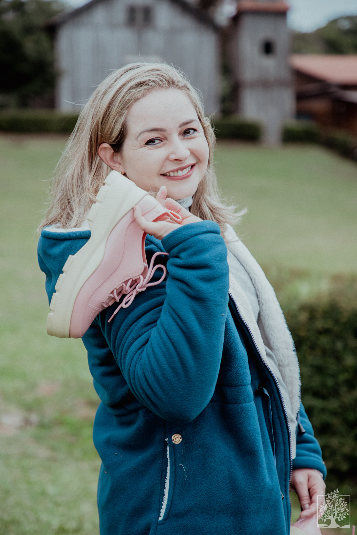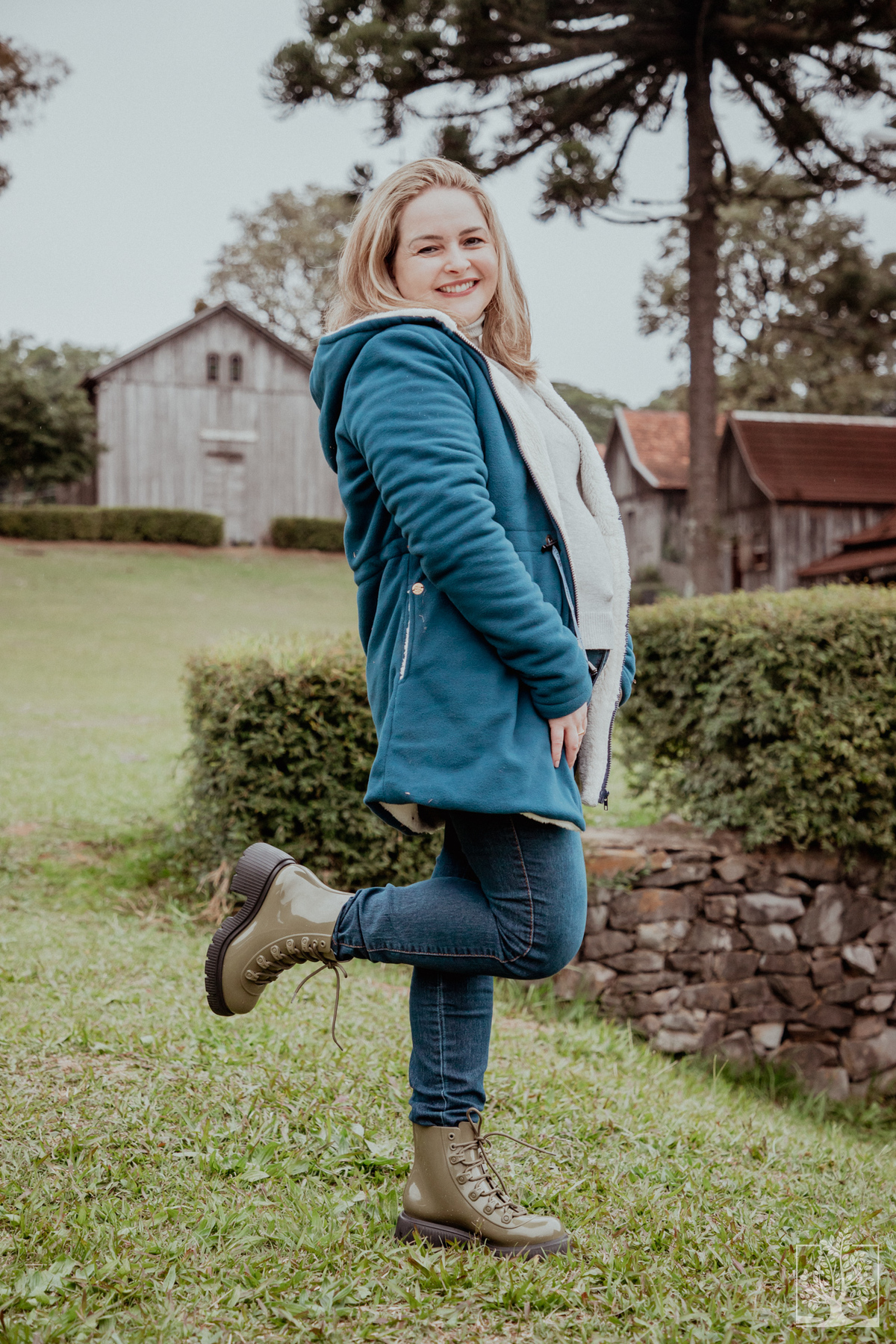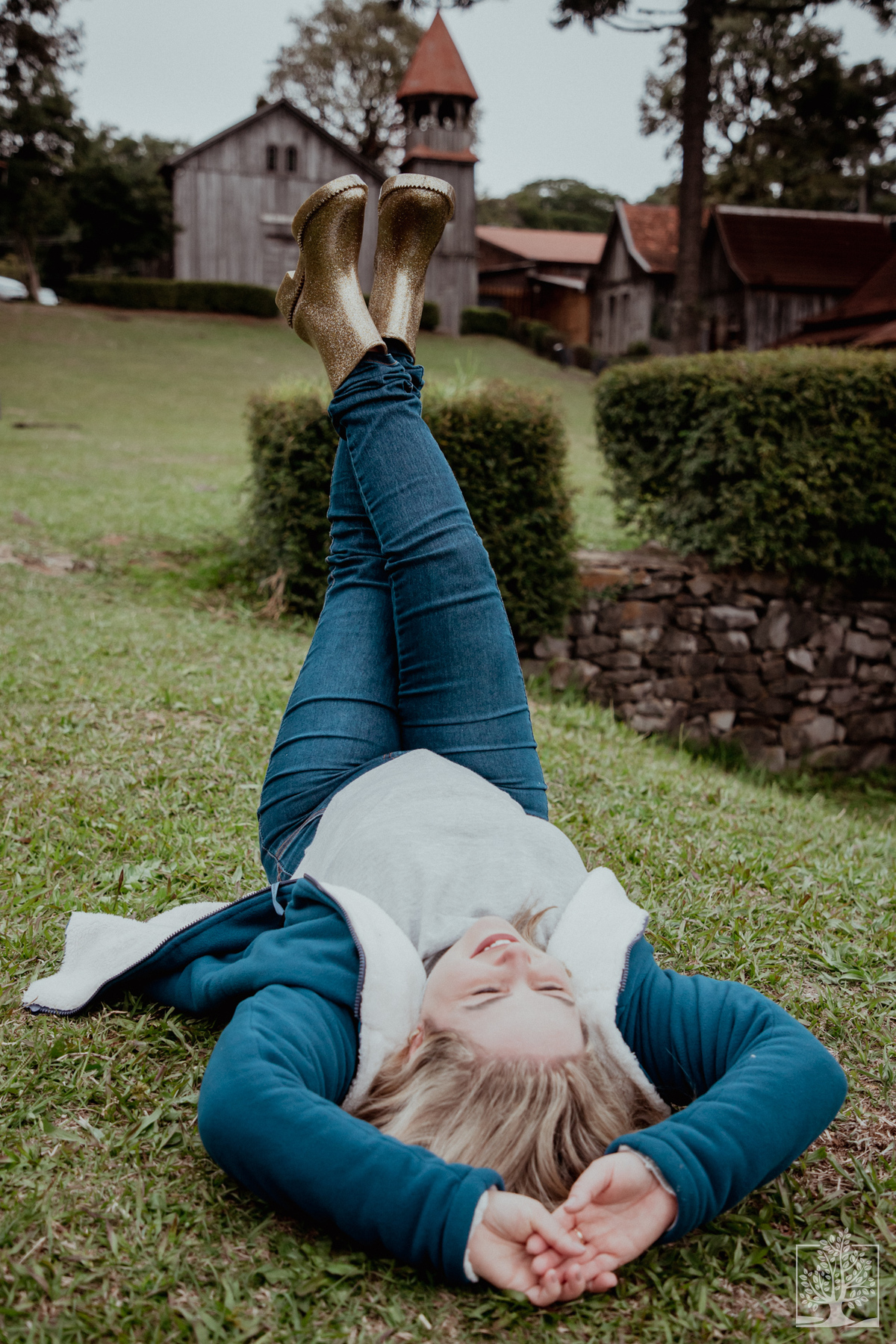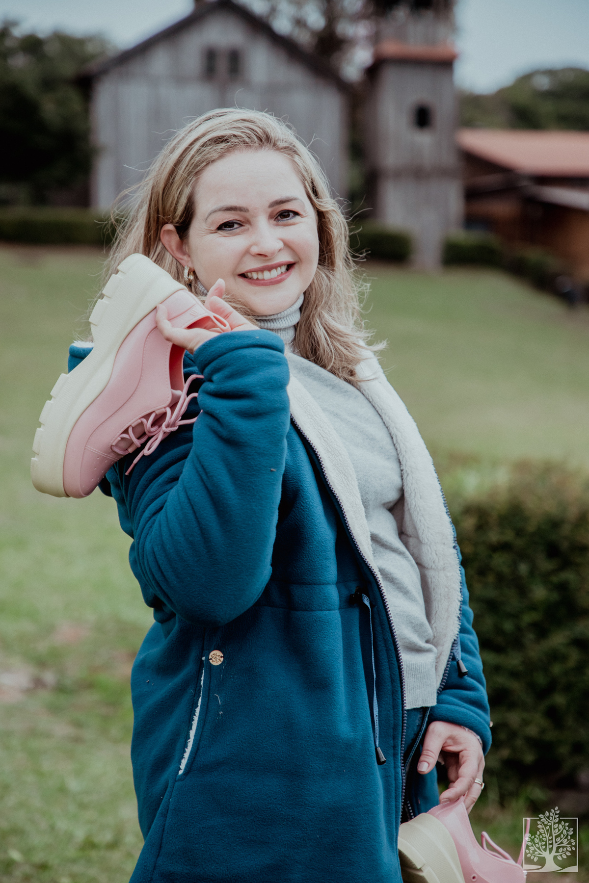 Como cenário, elegemos o parque da Festa Nacional da Uva, lugar especial, aberto ao público, com estacionamento gratuito e com muitos cenários legais para fotografias. O local que escolhemos é onde estão as réplicas das casinhas de madeira da antiga Caxias!