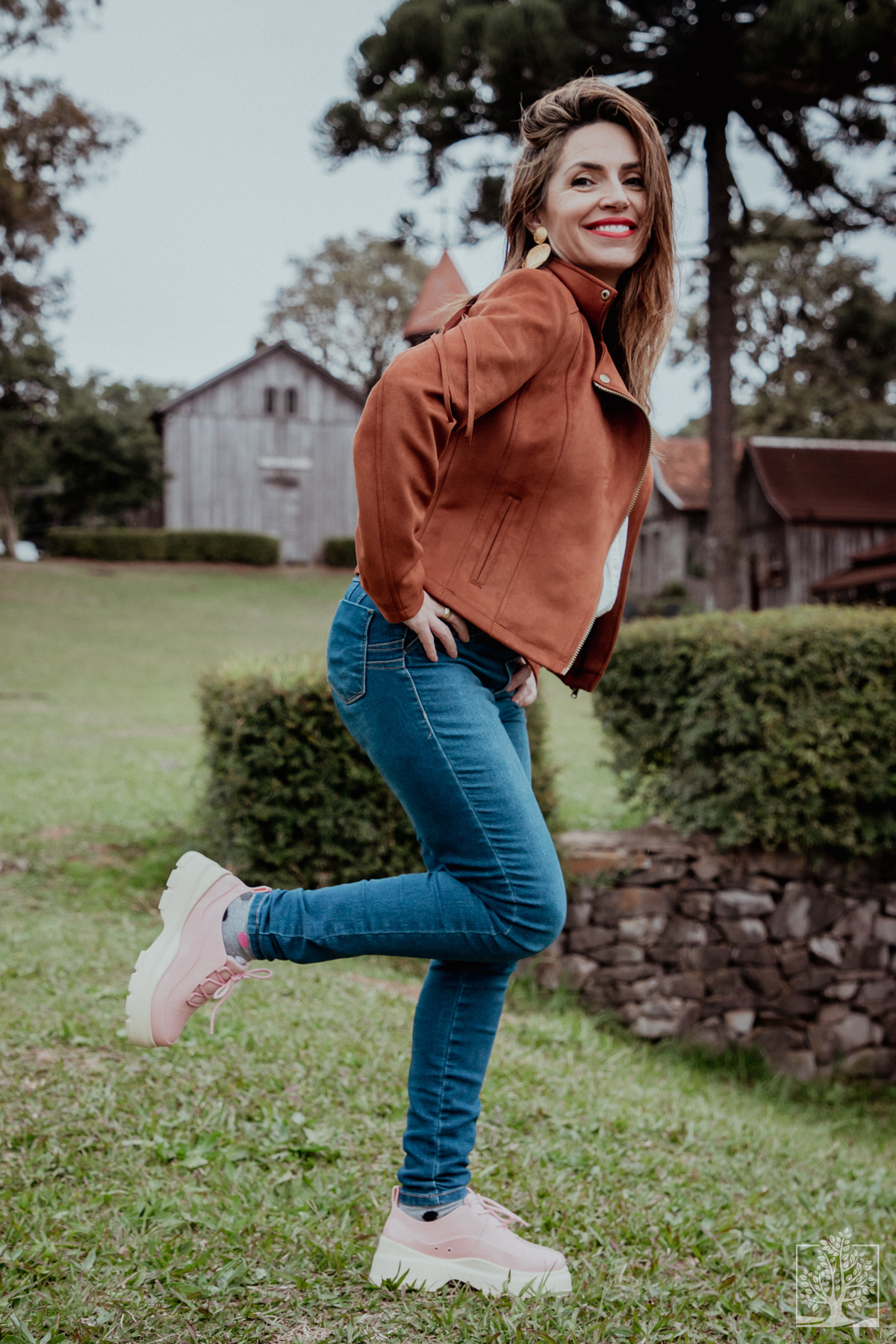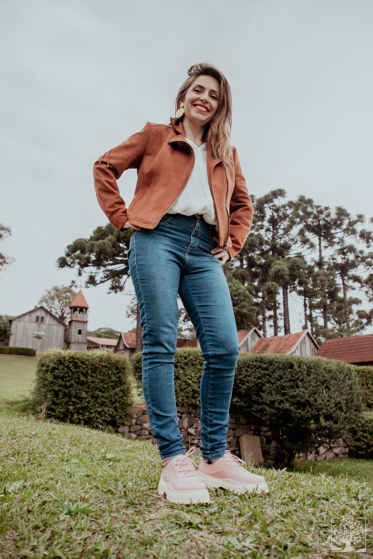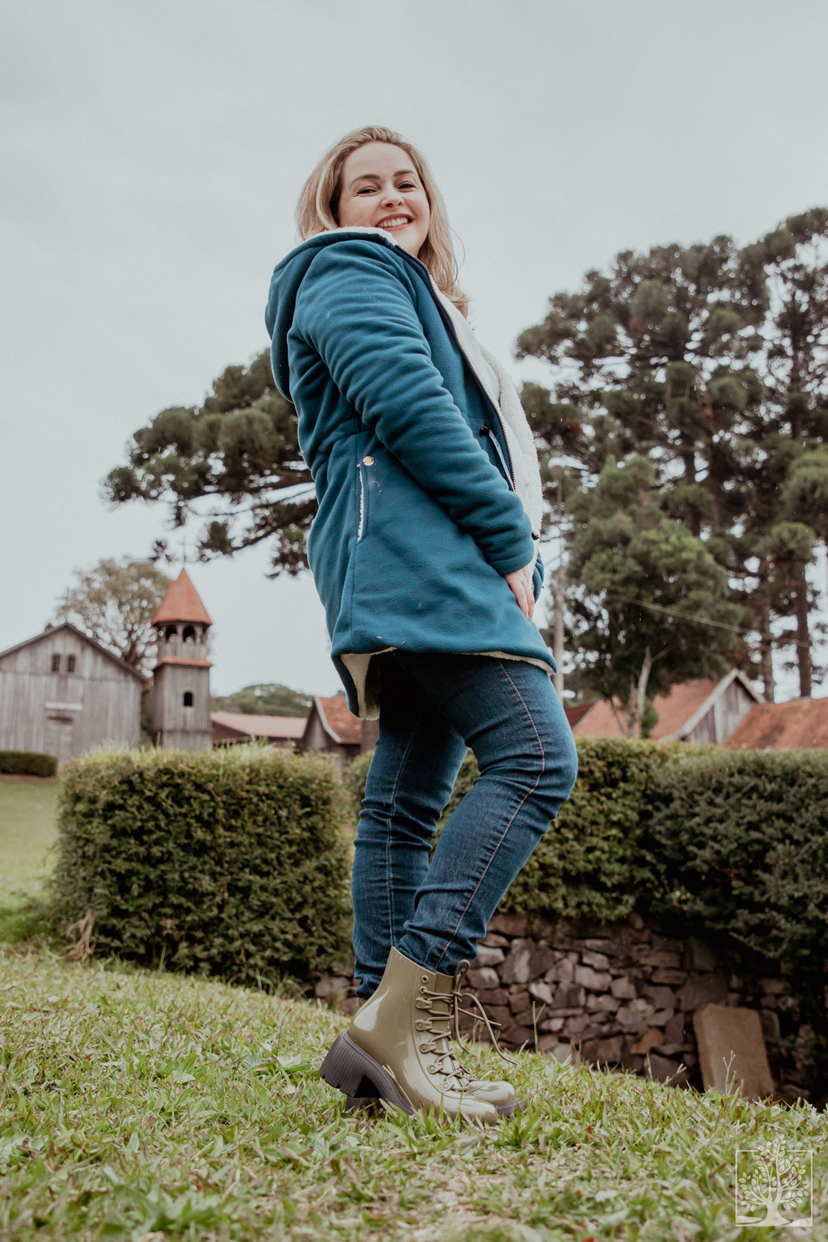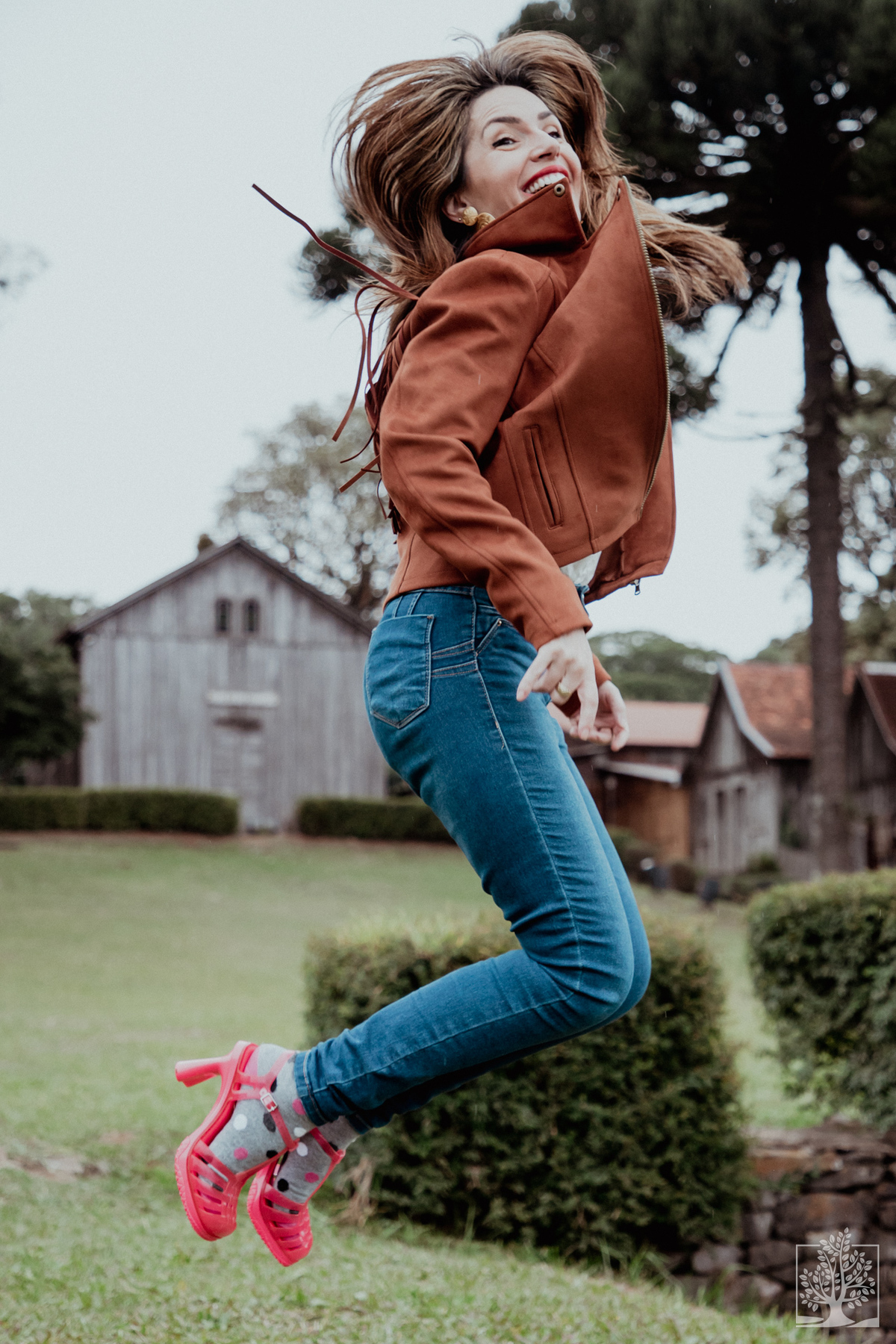Como cenário, elegemos o parque da Festa Nacional da Uva, lugar especial, aberto ao público, com estacionamento gratuito e com muitos cenários legais para fotografias. O local que escolhemos é onde estão as réplicas das casinhas de madeira da antiga Caxias!