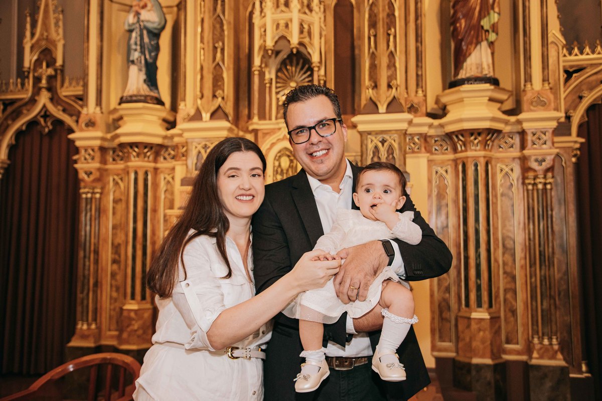 No dia 21 de março, a pequena Theodora Tibola Rausch visitou a Paróquia Santa Catarina, acompanhada dos pais, Fábio e Juli, e dos padrinhos, para a cerimônia do seu batizado. O Fábio já é uma figurinha conhecida, jornalista como eu, trabalhamos juntos em assessoria de imprensa e fui o fotógrafo de seu casamento. A pequena Theodora não reclamou nadinha e, à exceção das mãos na boca, a cerimônia foi muito linda e simbólica.