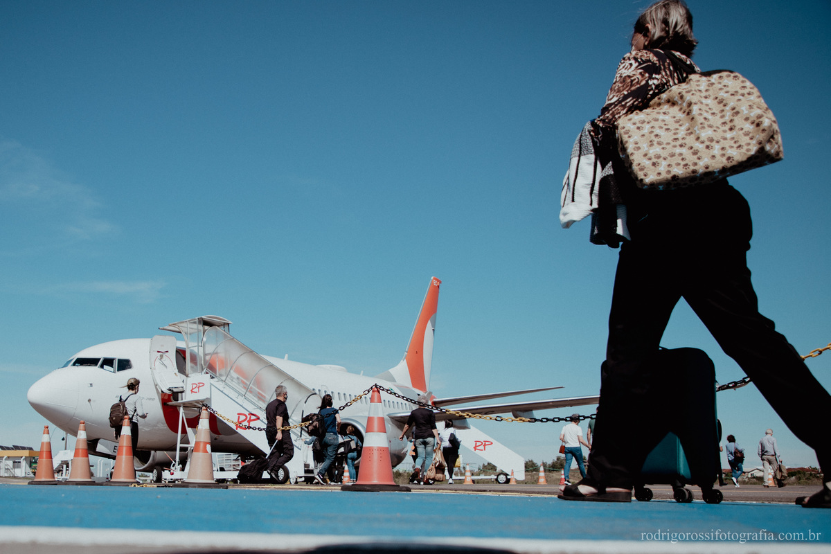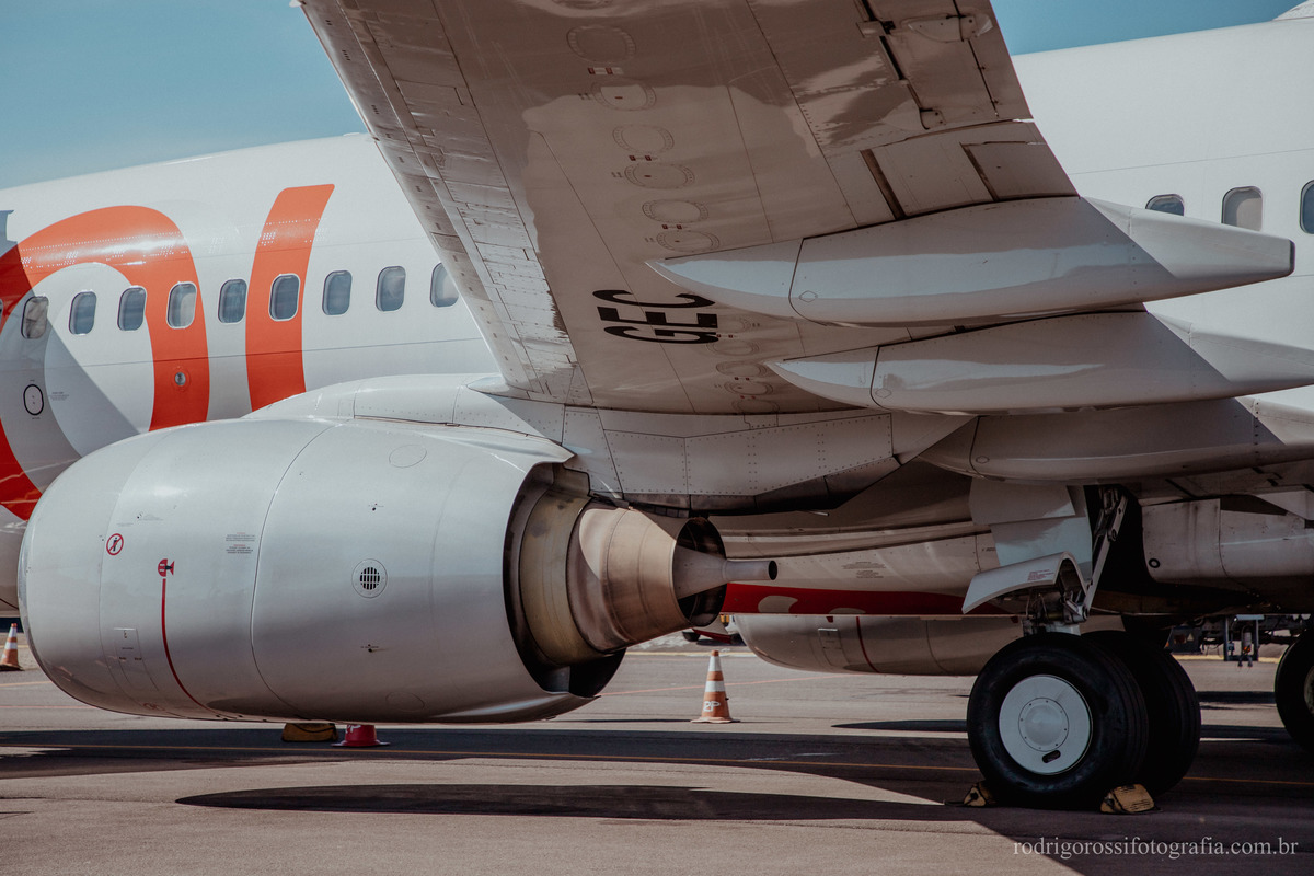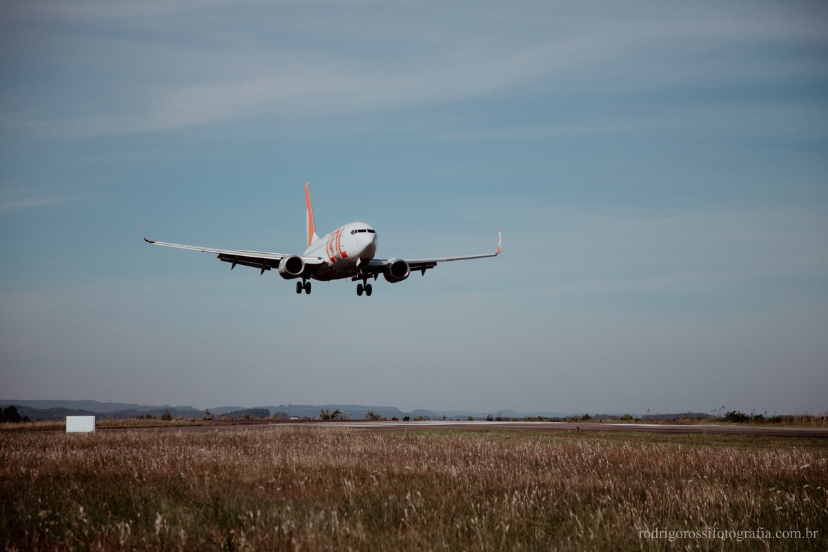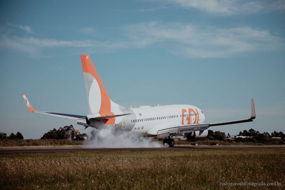 Pouso e decolagem do Boeing da Gol Linhas Aéreas, além de movimentação de embarque e desembarque de passageiros.