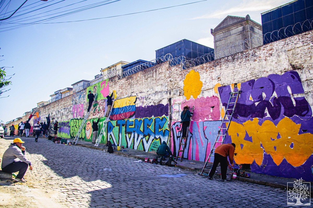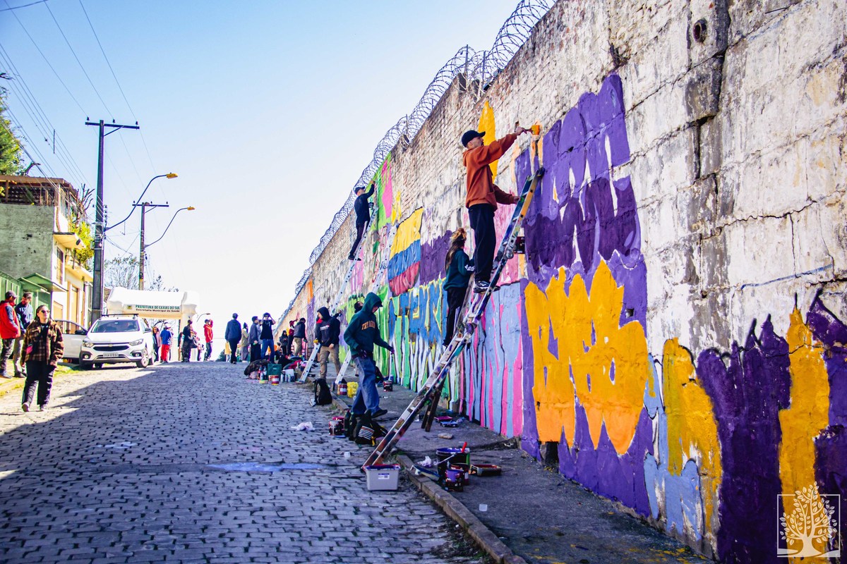 No local, acontece a grafitagem da face externa do muro do Cemitério Público Municipal, em um espaço com cerca de 80 metros de extensão e até oito metros de altura. A intervenção integra a ação Sopa de Letra, organizada pelo projeto Mosaico na Quebrada (@mosaiconaquebrada), iniciativa do Instituto SAMba (@institutosamba e @jessicadecarli), Vielas Espaço Cultural (@vielasespacocultural) e Centro Tradicionalista do Graffiti É o Klan, com financiamento do Fundo Social da Sicredi Pioneira (@sicredipioneira).