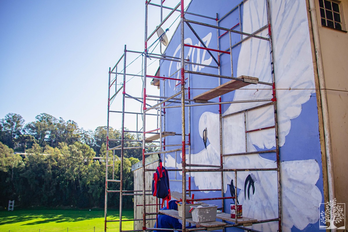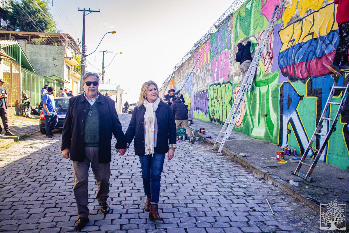 O poder público também auxiliou, por meio da Secretaria Municipal do Meio Ambiente (@meioambientecaxias). O prefeito Adiló Didomenico (@adilocaxias) e a vice-prefeita Paula Ioris (@paulaioris) também passaram e conferiram a ação cultural, que tem como principal objetivo levar mais cor e vida àquela comunidade. Paula, por sinal, também conferiu outra pintura que estava sendo executada no bairro, junto à parede lateral de uma residência no interior do bairro. O artista Róger Zortéa (@rzorteaart) grafitava uma imagem enorme de uma pomba branca, com as inscrições "Paz" e um versículo bíblico.