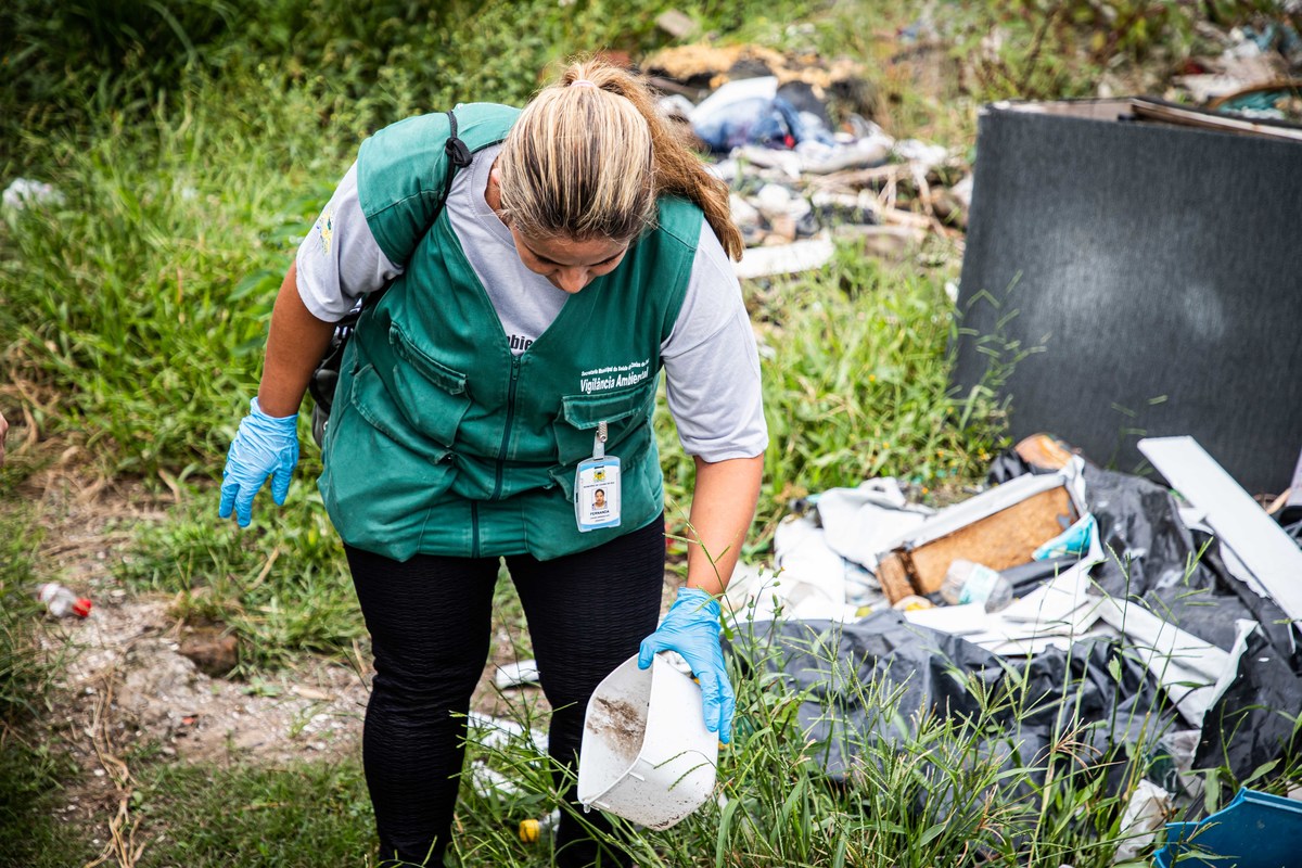 No Reolon, encontramos centenas de potes plásticos, garrafas, tampinhas, uma panela de ferro, lonas, pneus, móveis e equipamentos eletrônicos descartados, todos acumulando água.