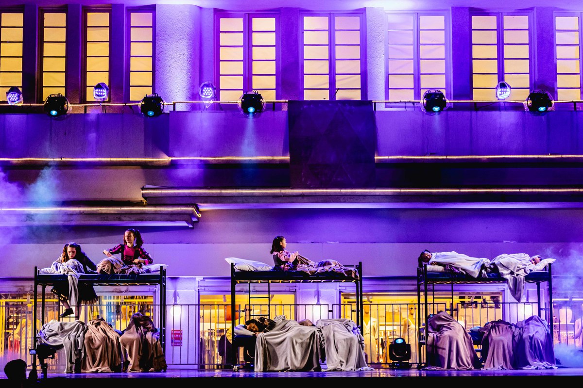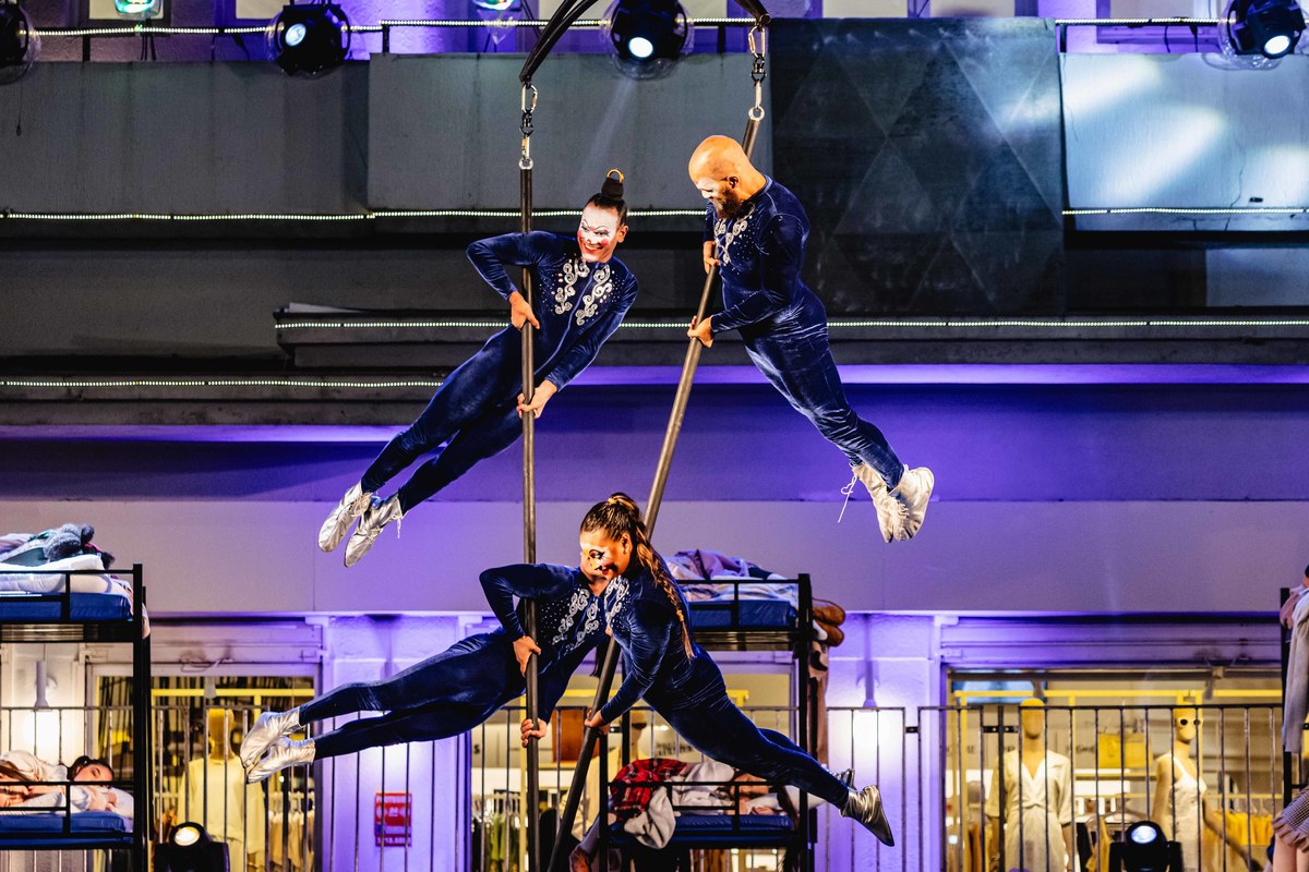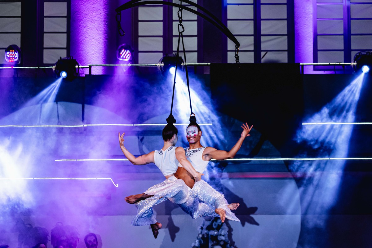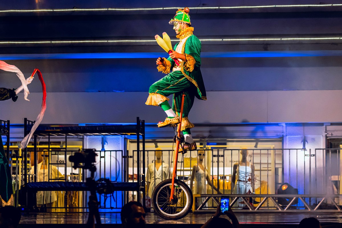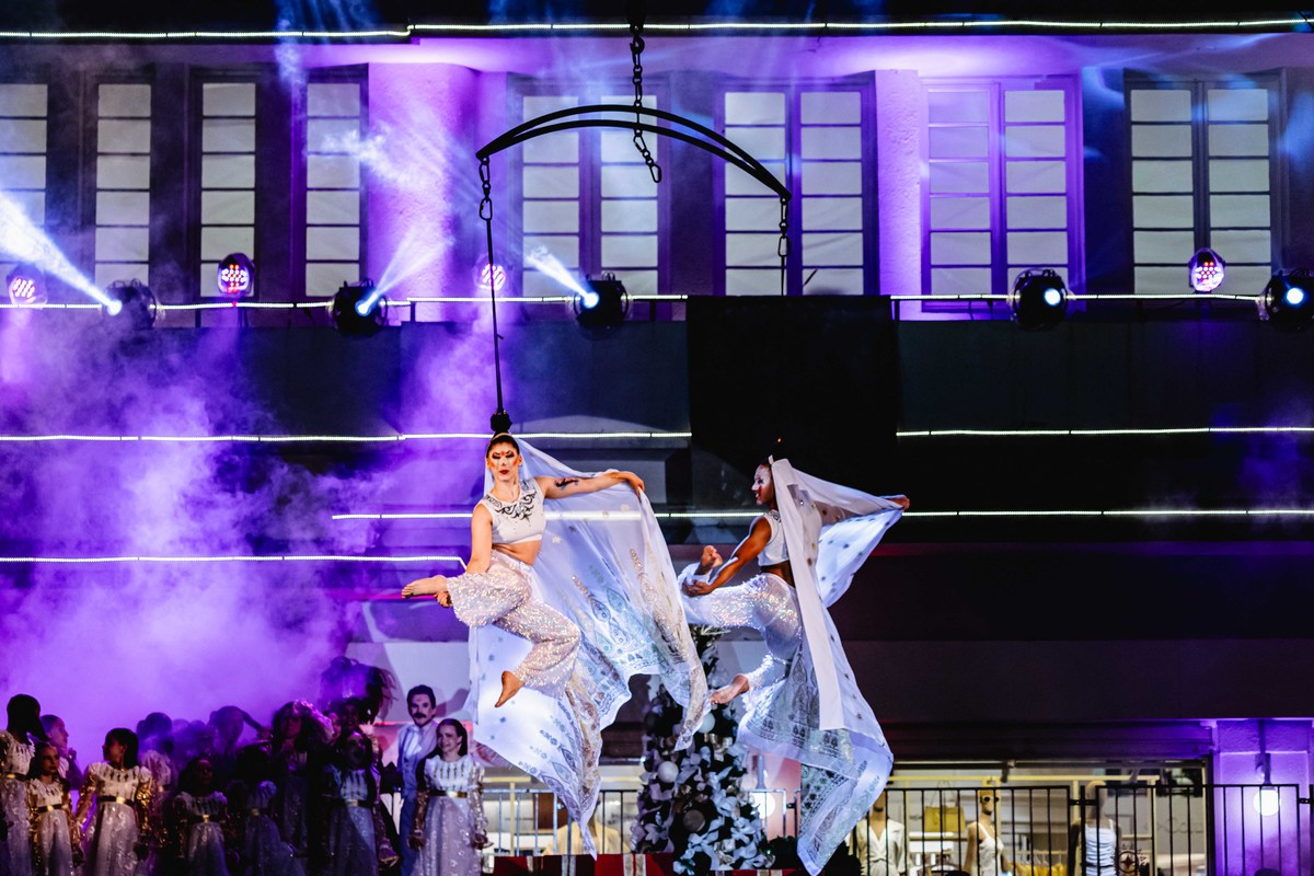 Neste ano, o espetáculo aconteceu em duas noites seguidas, no sábado e no domingo, dias 30 de novembro e 1º de dezembro. Estas fotografias são do dia 30. No Grande Espetáculo de Natal Magnabosco, a luxuosa loja de roupas caxiense, sediada há décadas no cruzamento das ruas Dr. Montaury e Sinimbu, traz para o público presente apresentações circenses e teatrais, com multiplicidade de artistas, de atos e de efeitos cenográficos e show de luzes. O tráfego do entorno é restringido e centenas de cadeiras são dispostas sobre as faixas de rolagem da rua, para que as pessoas possam assistir ao espetáculo. Quem preferir, também assiste de camarote através das janelas dos prédios vizinhos. Ainda há a opção de tomar um assento na arquibancada.