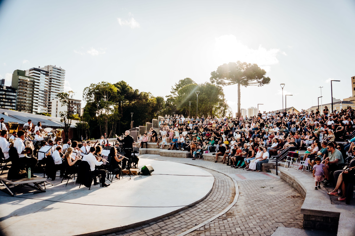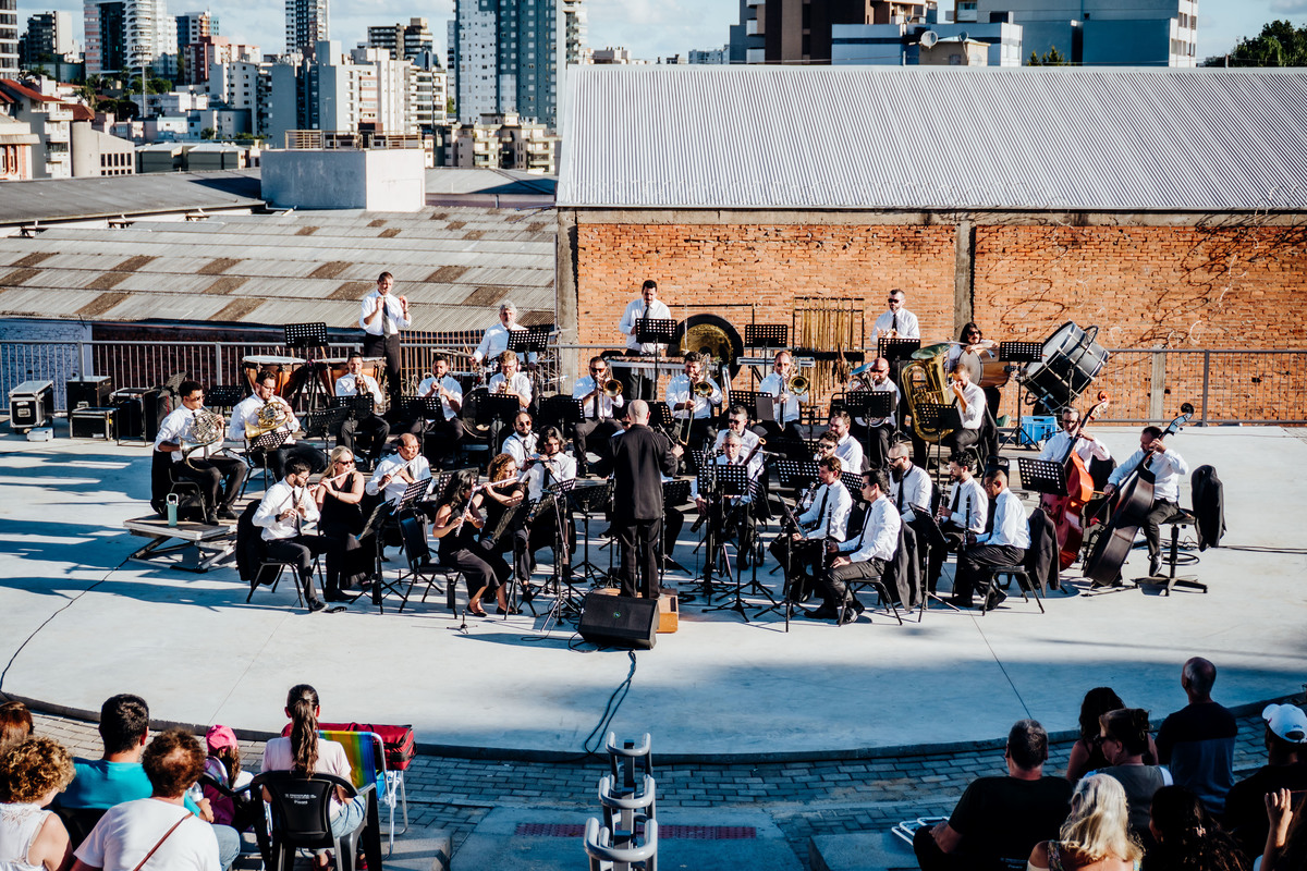 Há uma semana, no último domingo (01/02), a Orquestra Municipal de Sopros de Caxias do Sul reuniu um público de mais de 600 pessoas no anfiteatro do Largo da Estação Férrea, o novo point cultural da cidade, inaugurado na atual gestão do prefeito Adiló Didomenico. A Orquestra apresentou ao público a peça intitulada Trilhas e Tradições - Um Passeio Musical, com regência e direção artística do maestro Gilberto Salvagni e um belíssimo solo do clarinetista Elisier Palhano Leme.
