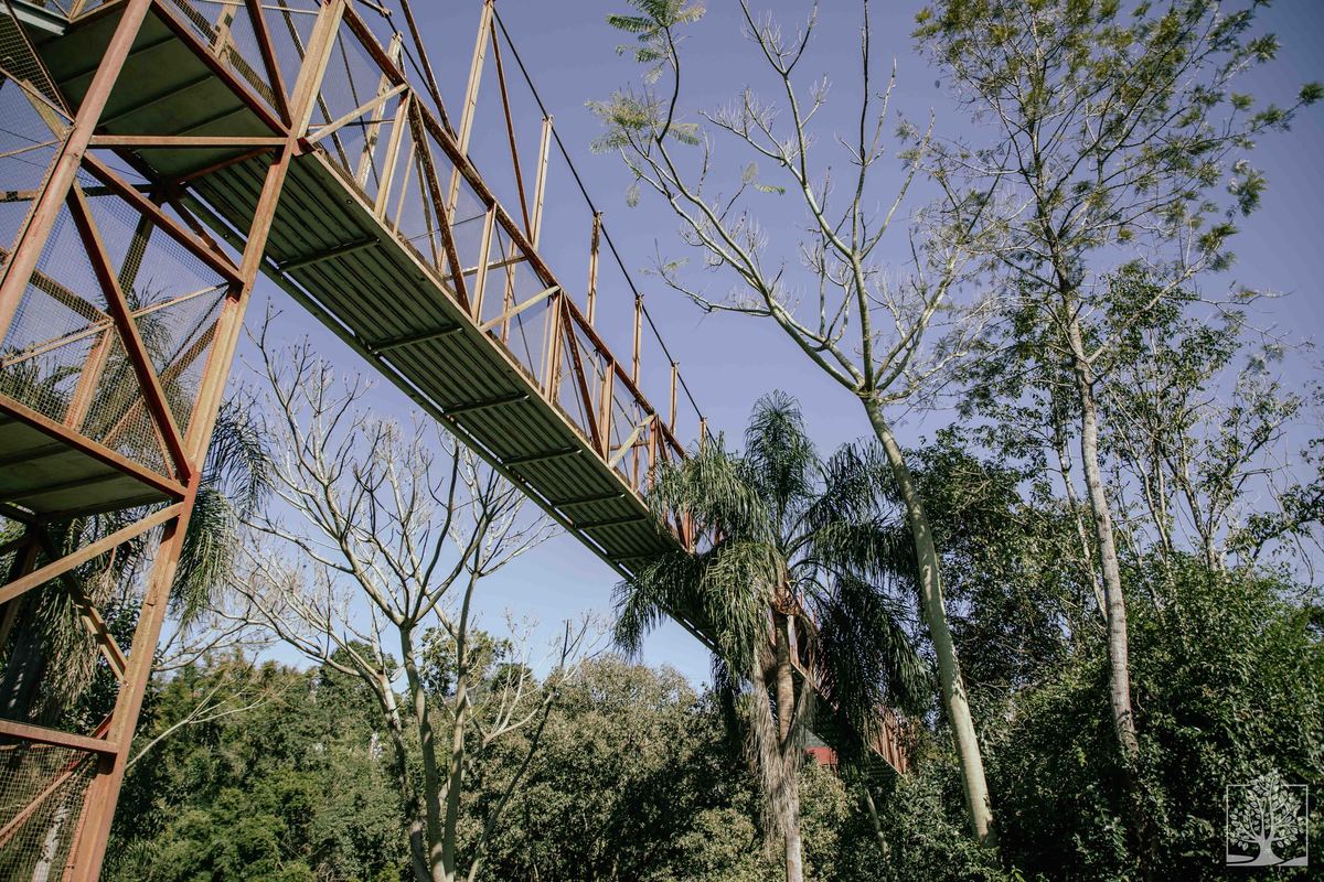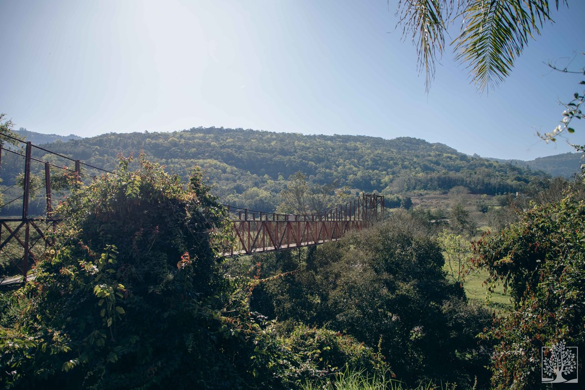 O nosso passeio começou bem antes. Paramos no município pequenino de Santa Tereza (RS) para meia hora de fotografias da cidade bucólica. Uma linda ponte pênsil somente para pedestres, a torre da igreja matriz e alguns casebres e casarões coloniais. Um lugarzinho encantador.
