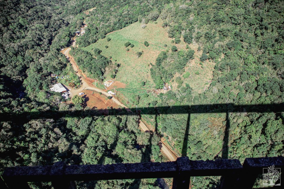 Um dos viadutos em que o trem percorre é o Viaduto 13, que já apareceu aqui no blog. Ele, que é o terceiro maior viaduto ferroviário do planeta, com 143 metros de altura e mais de meio quilômetro de extensão. Os demais, como o Pesseguinho e o Mula Preta, são viadutos vazados, ou seja, não dispõem de segurança se a pessoa quiser trafegar sobre eles a pé. Não fique curioso, pois tem foto dele, de dentro do trem, aqui no post. É um olhar para baixo direto! São fortes emoções!