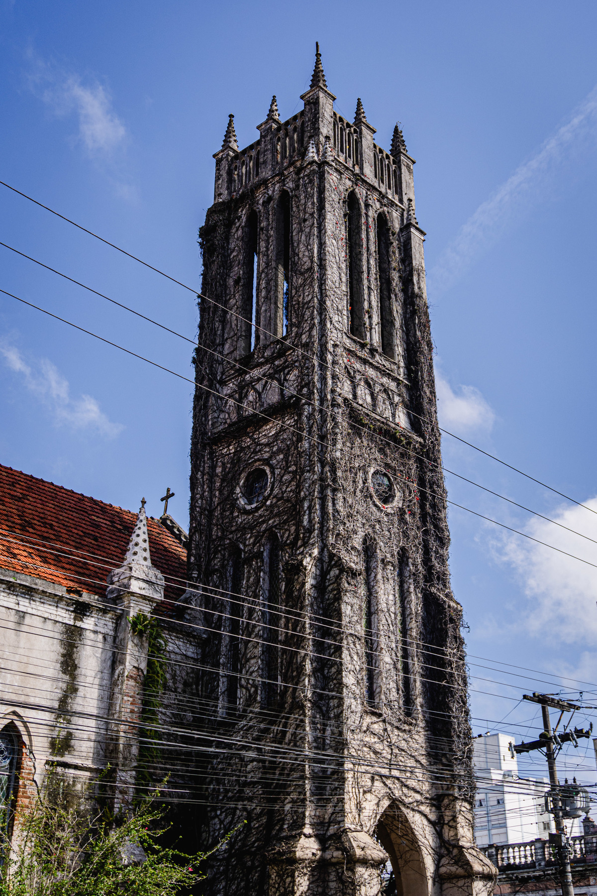 Outro aspecto que me chamou atenção foram os prédios históricos. Todo o centro histórico da cidade possui prédios com aparência antiga e provavelmente tombados. Os quarteirões são retos, em ângulo de 90ºC. Outro ponto que me chamou atenção, talvez negativamente, é a enorme concentração de moradores de rua na área central. Certamente, há muito mais moradores de rua no centro de Pelotas do que na área central de Caxias do Sul. No sábado, também fotografei a Catedral Episcopal Anglicana Paróquia Redentor, também conhecida como "igreja cabeluda", por estar tomada de trepadeiras e a Livraria Mundial (Rua Quinze de Novembro, 564), na qual conheci o dono, perguntei sobre livros de fotografia e ele me apresentou excelentes opções - quis muito, mas consegui resistir à tentação.