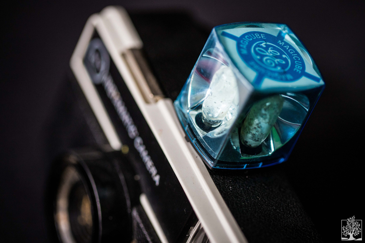 A resposta para essa pergunta é, justamente, o Magicube! Comercializado entre as décadas de 1960 e 1970, Magicubes eram pequenos cubos compostos por quatro lâmpadas de flash individuais (uma de cada lado do cubo), apoiadas por refletores de plástico. As lâmpadas, no entanto, não possuíam filamentos e eram preenchidas com folhas de zircônio gás oxigênio. Quando você acende o zircônio no fogo, ele queima com um brilho branco ofuscante! Na base de cada uma das lâmpadas, havia um minúsculo primer, feito de fulminato, um explosivo acionado por fricção. Fotografar com o Magicube era assim: você carregaria o flash na câmera e apertaria o obturador. Simultaneamente, uma alavanca pressionava uma fenda embaixo do Magicube, atingindo uma pequenina mola que acionaria o fulminatoFaria o que bons explosivos fazem: explodir!